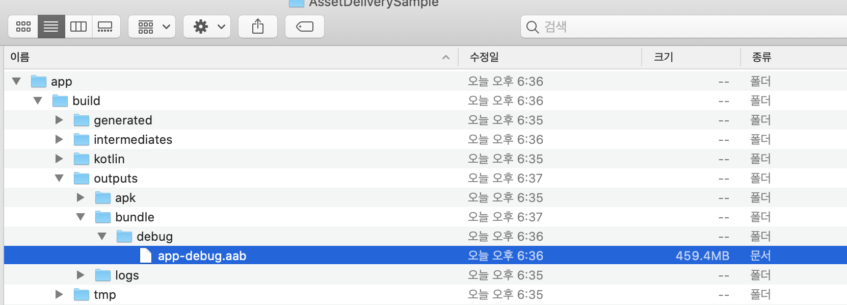 java -jar bundletool.jar build-apks --bundle={해당프로젝트의 앱번들 경로}/app-debug.aab \--output={APK가 생성될 경로}/padTest.apks --local-testing
